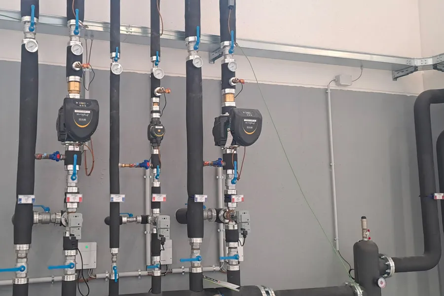 Ampliamento di un capannone con installazione di caldaia a gas metano a condensazione e impianto radiante a pavimento.